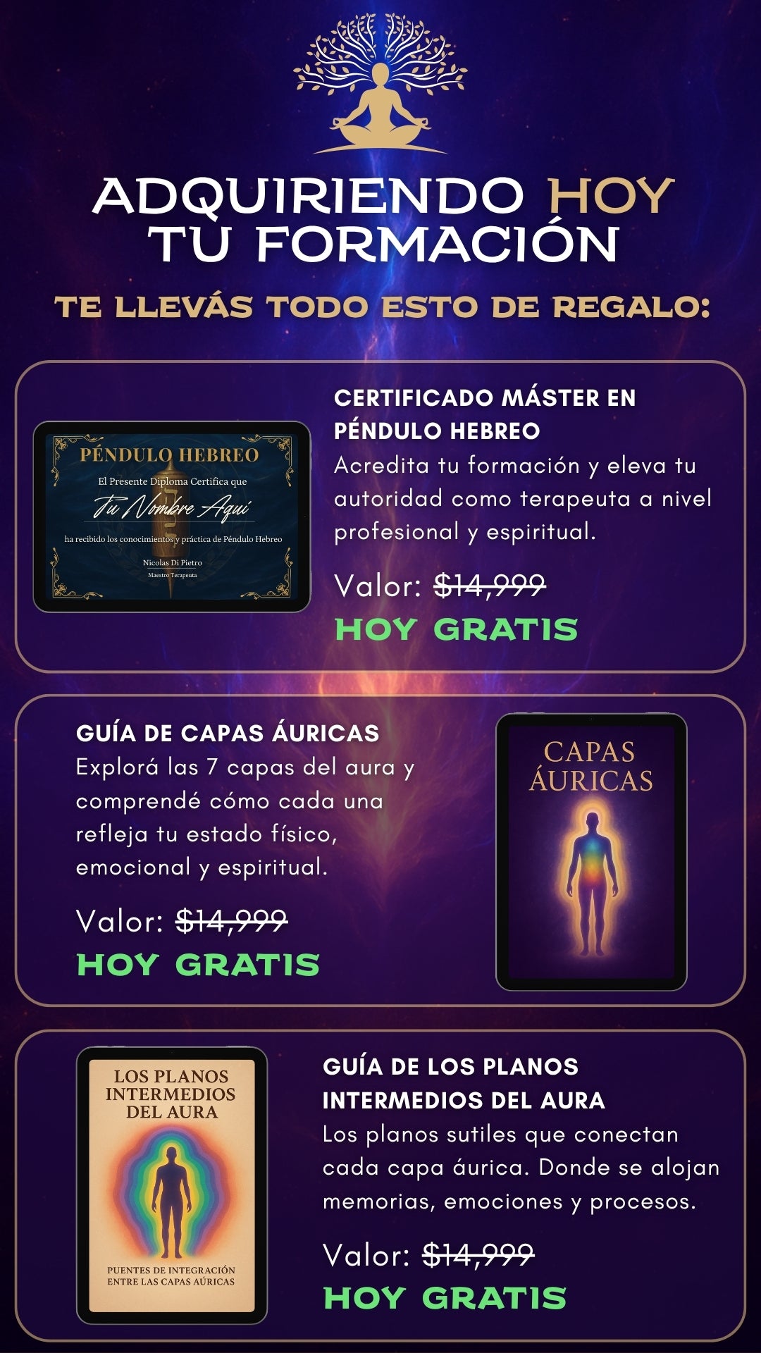 Sí. Aprenderás a usar el péndulo hebreo tanto para tu equilibrio personal como para acompañar procesos energéticos en otras personas.